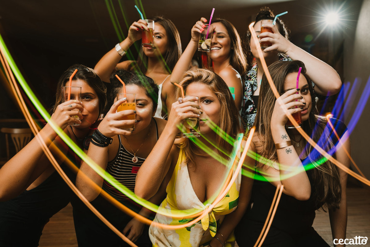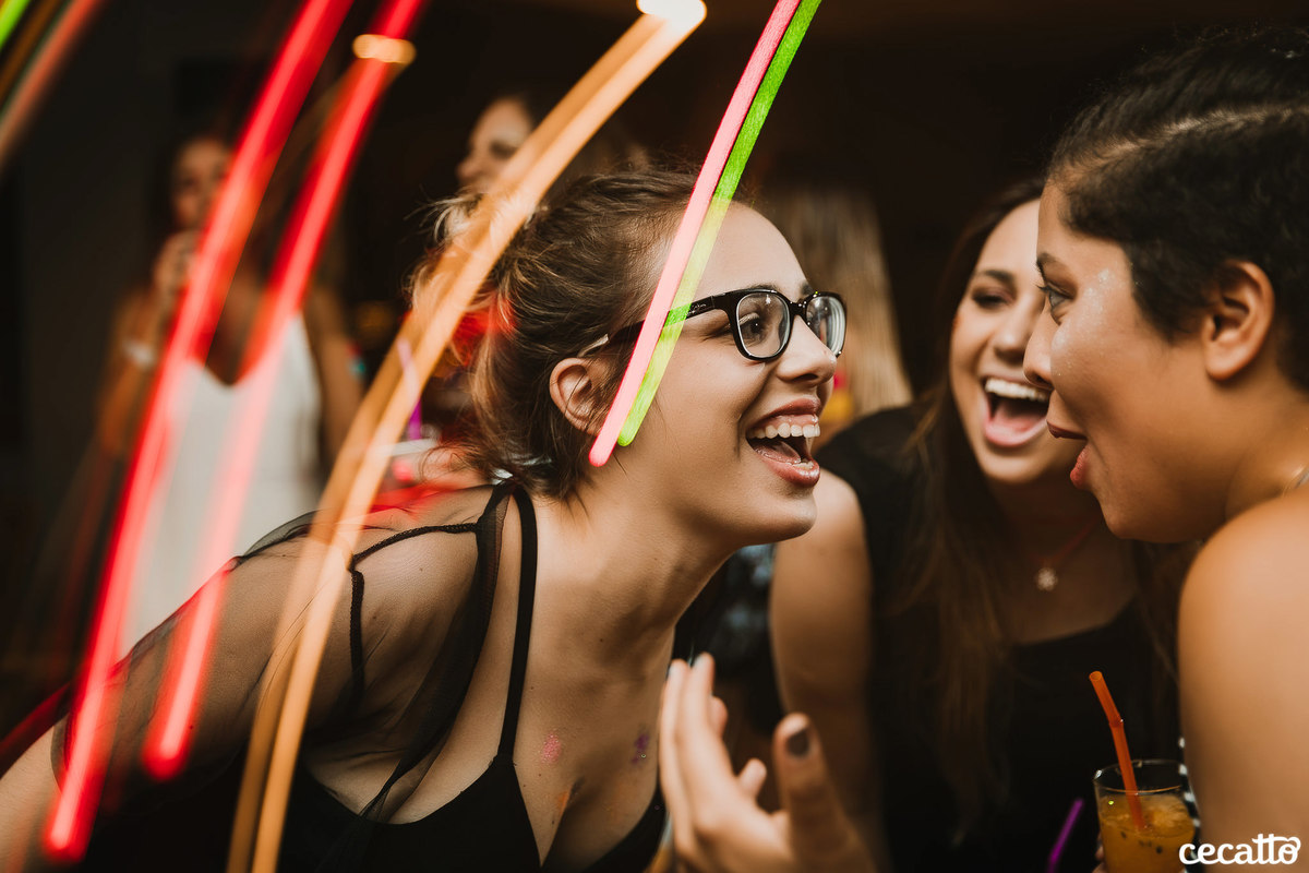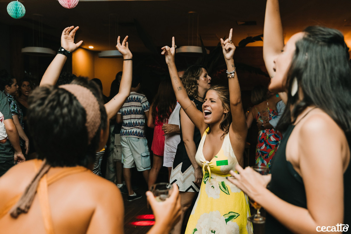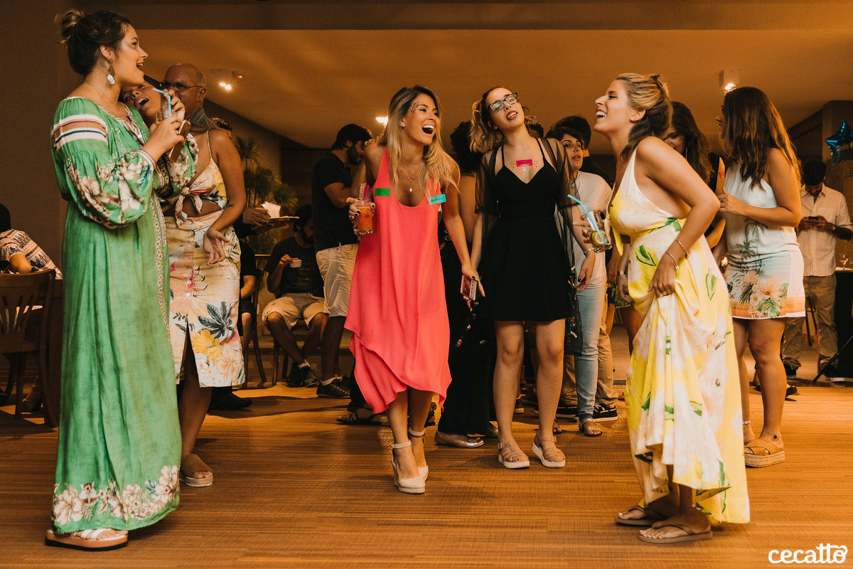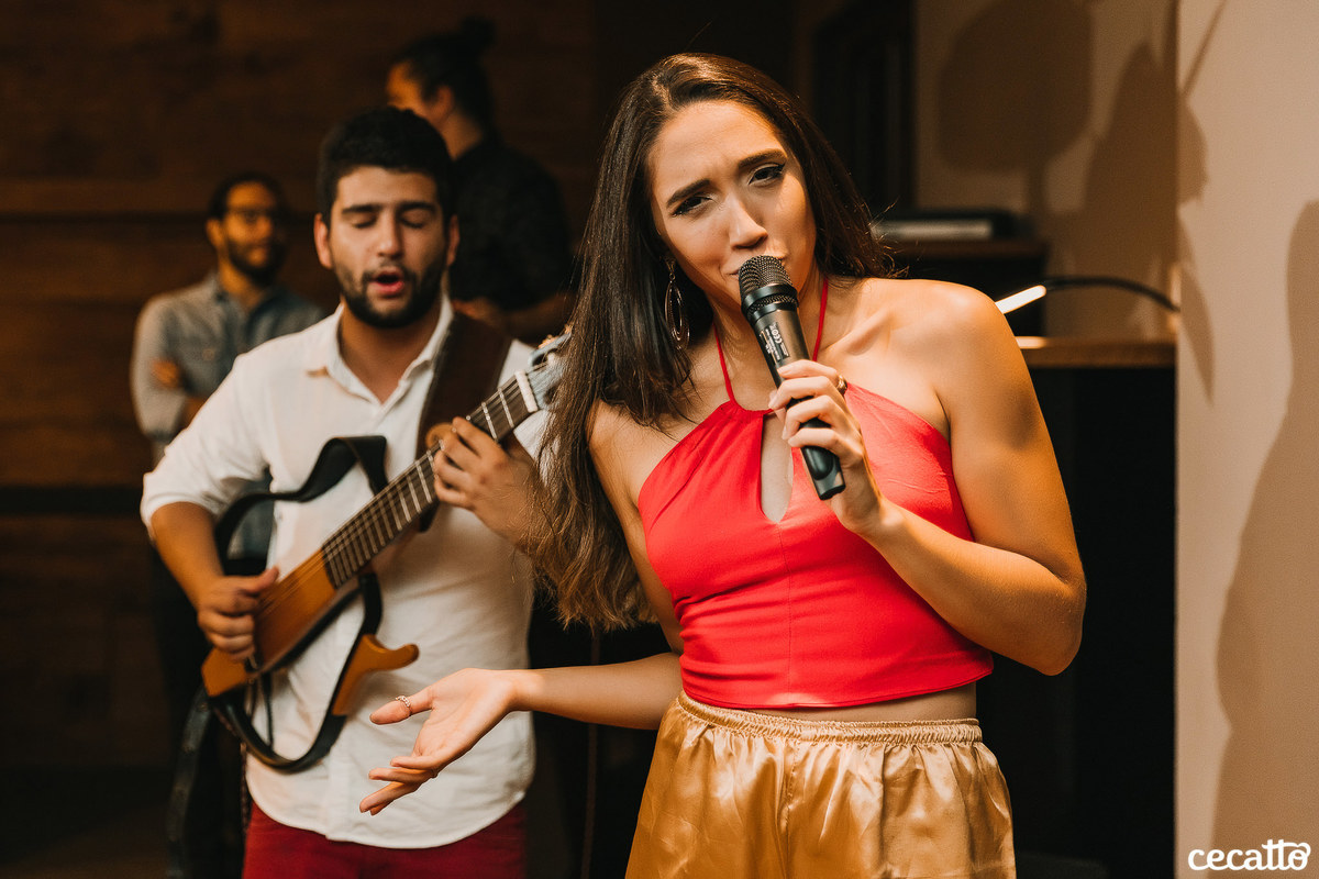 Através dos detalhes da decoração, ficou visível o quanto a mãe e a irmã colocaram amor e se dedicaram para deixar tudo do jeitinho dela. O salão estava moderno e estiloso, com direito a lindos abacaxis coloridos, e de surpresa, ainda teve um show da Banda Samba e Amor!