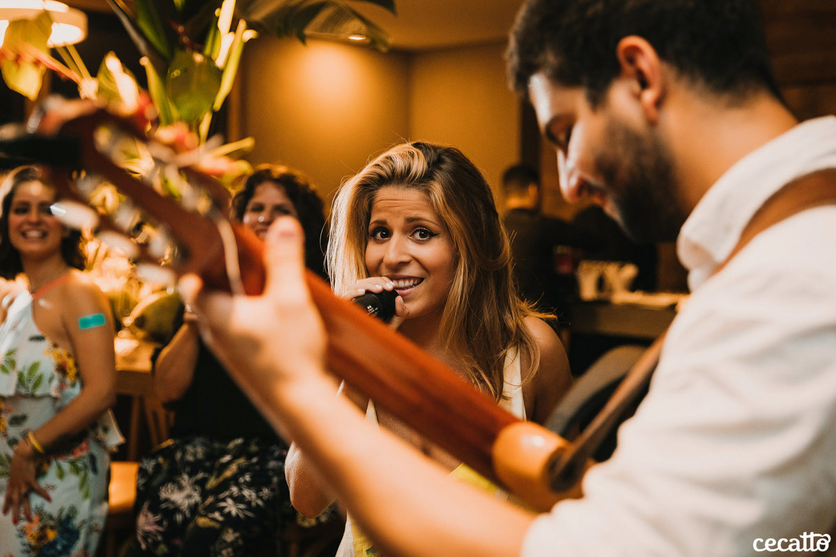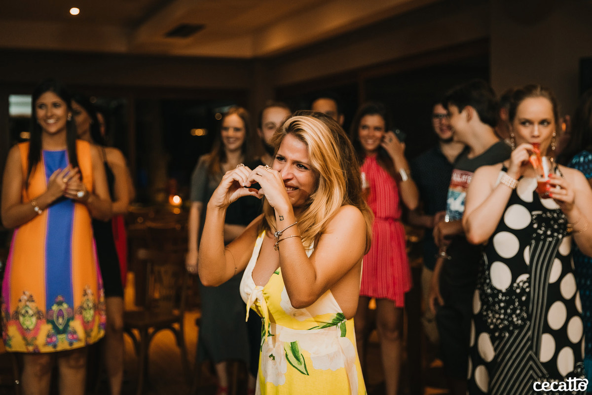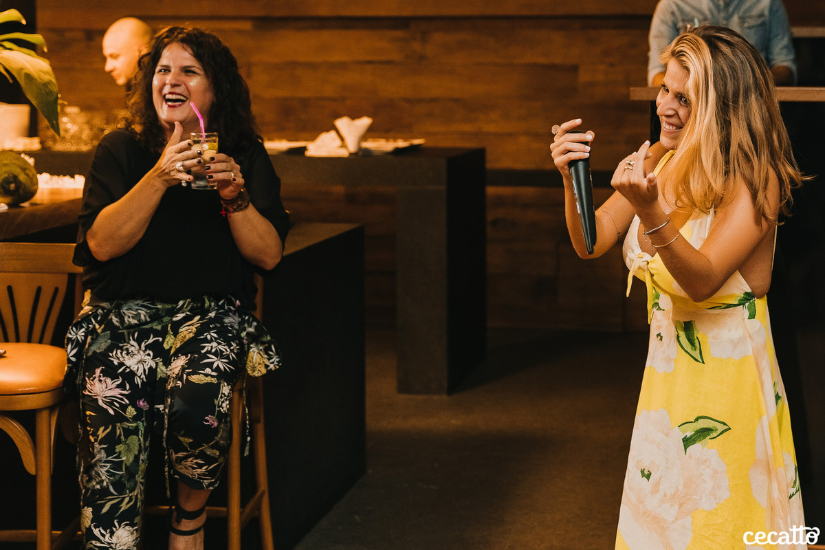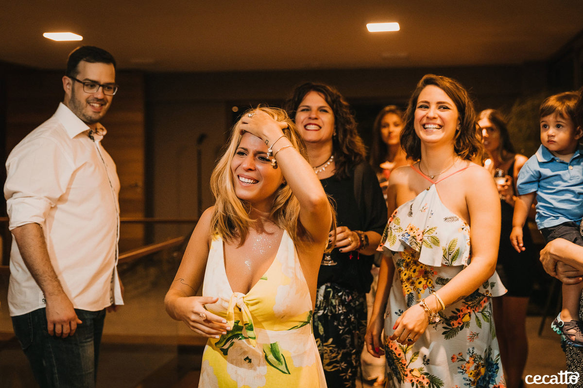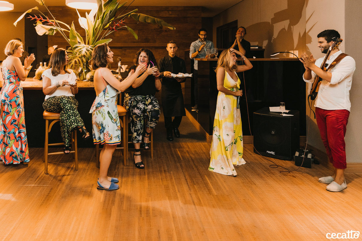 A Duda transmitia no olhar muita gratidão por tudo que estava vivendo. Ela radiou a noite inteira no seu vestido amarelo, com seus cabelos loiros e um chinelinho nos pés. Nos emocionamos junto com ela. Foi uma noite de boas energias, muita gratidão, amor e orgulho!