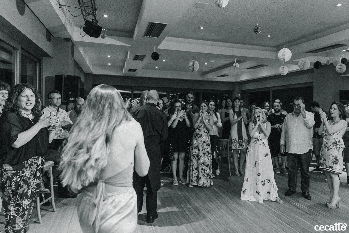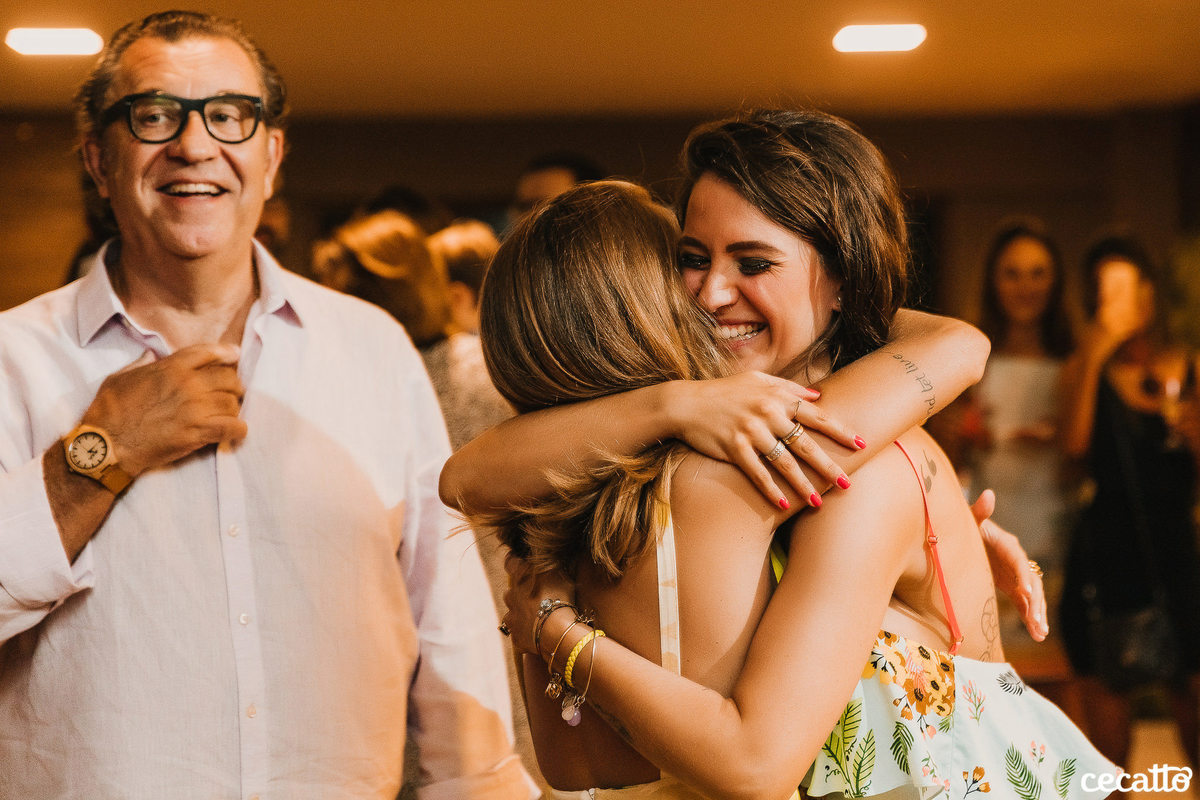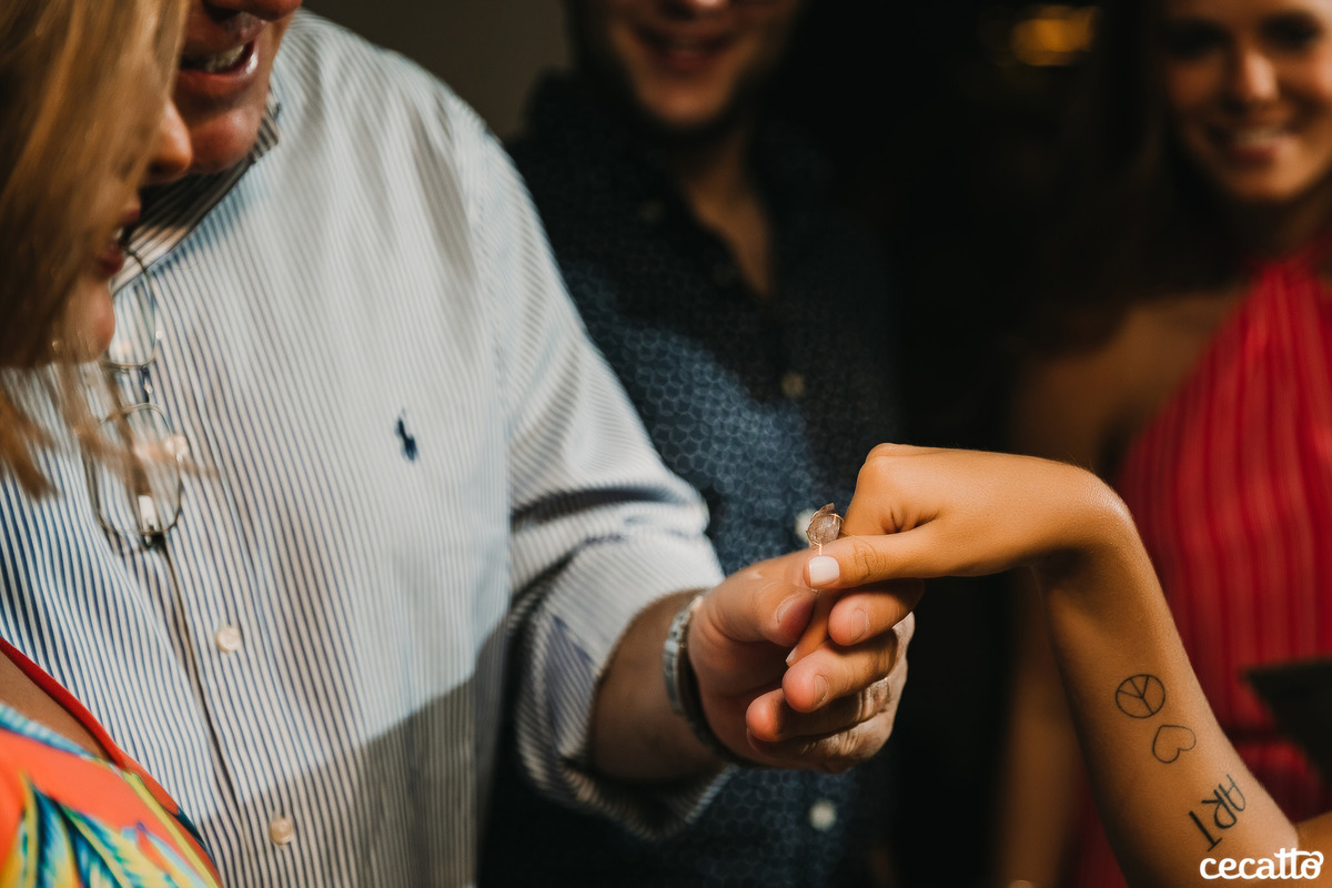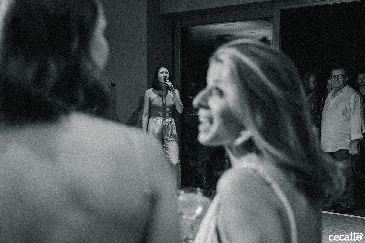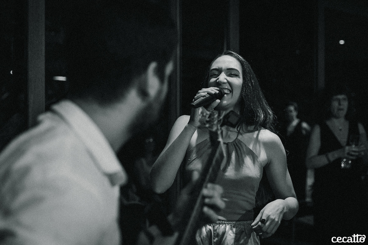 A Duda transmitia no olhar muita gratidão por tudo que estava vivendo. Ela radiou a noite inteira no seu vestido amarelo, com seus cabelos loiros e um chinelinho nos pés. Nos emocionamos junto com ela. Foi uma noite de boas energias, muita gratidão, amor e orgulho!