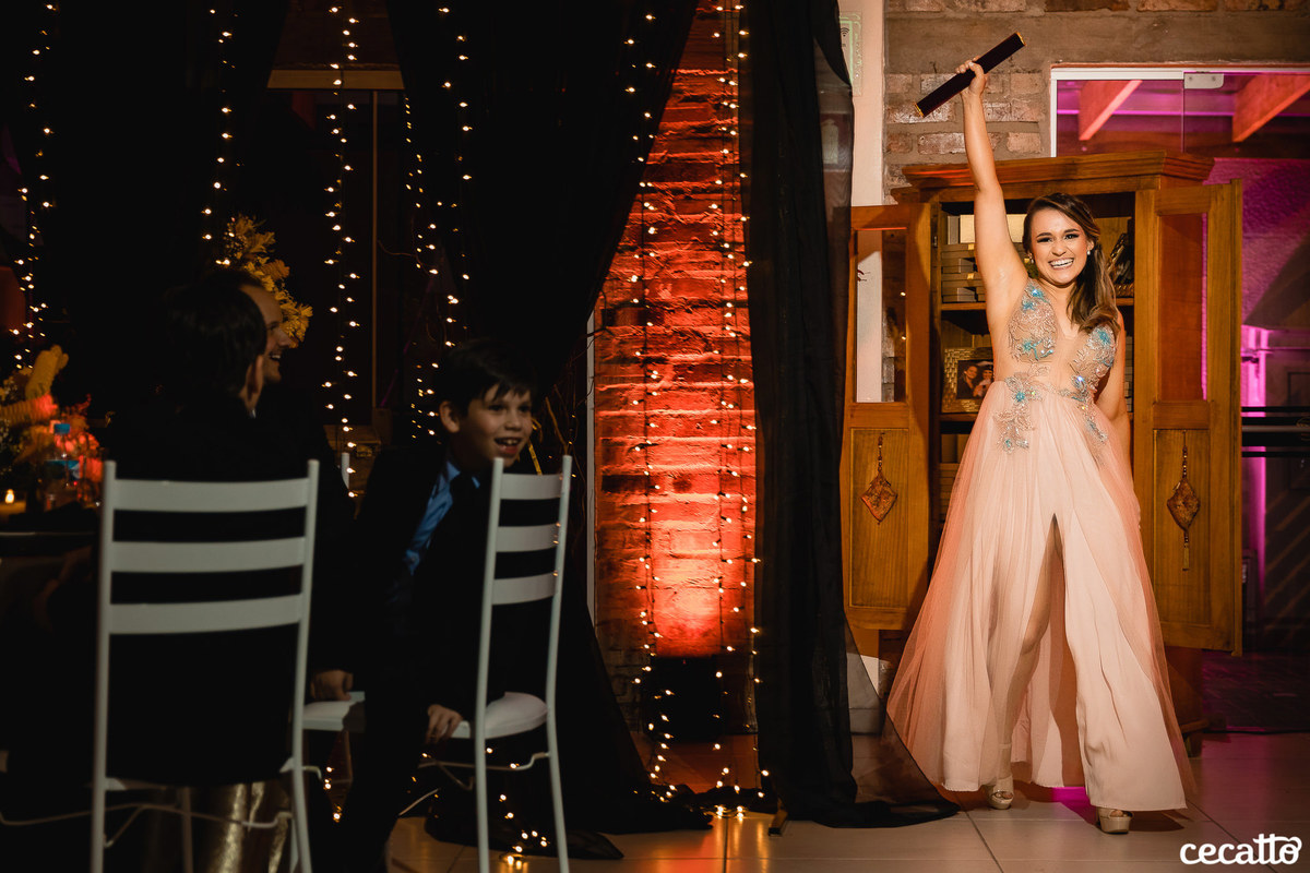 Ao ouvirmos o discurso de sua dinda, pessoa que proporcionou a linda festa de formatura da Pati, o discurso de seus familiares, e principalmente, a mensagem que ela preparou contando toda sua história desde quando veio para Porto Alegre, ficamos muito emocionados, e é essa emoção que queremos que vocês sintam através das nossas fotos. Muita gratidão, amor e alegria.