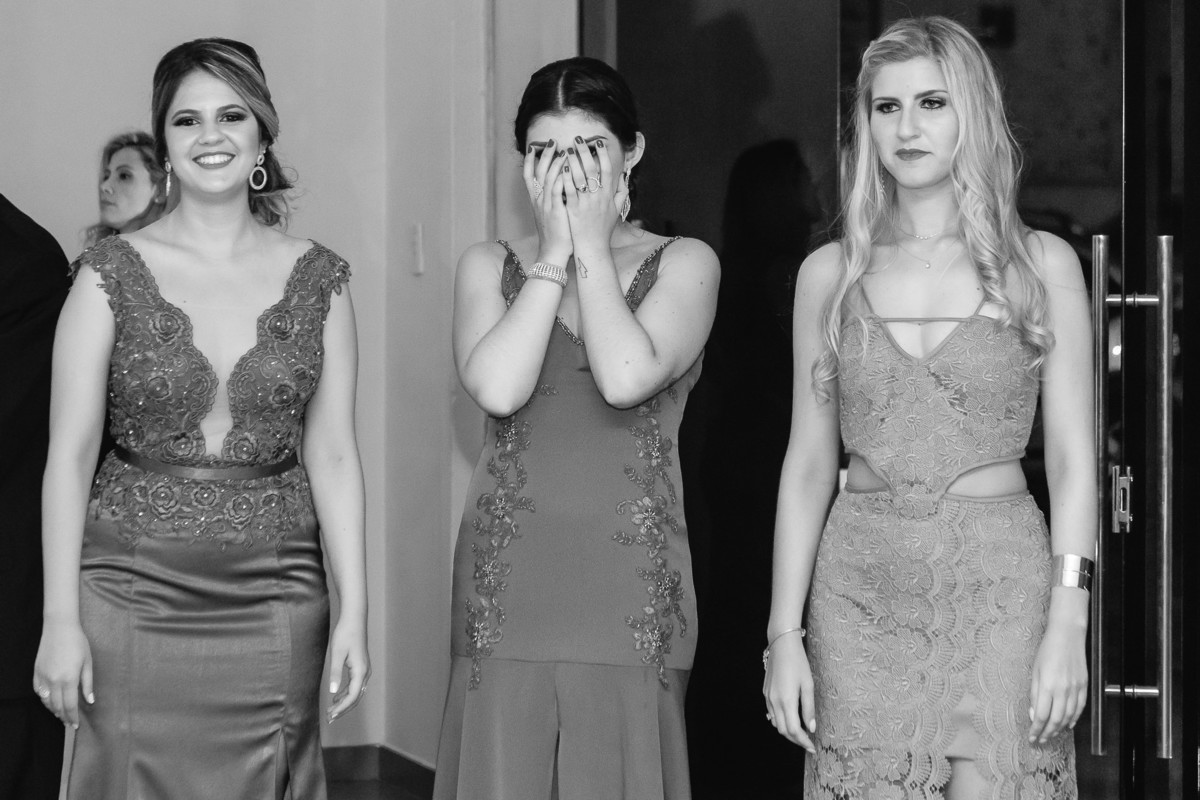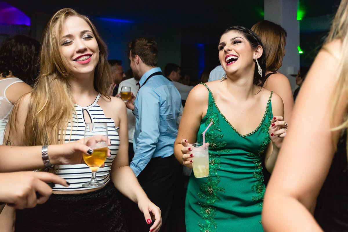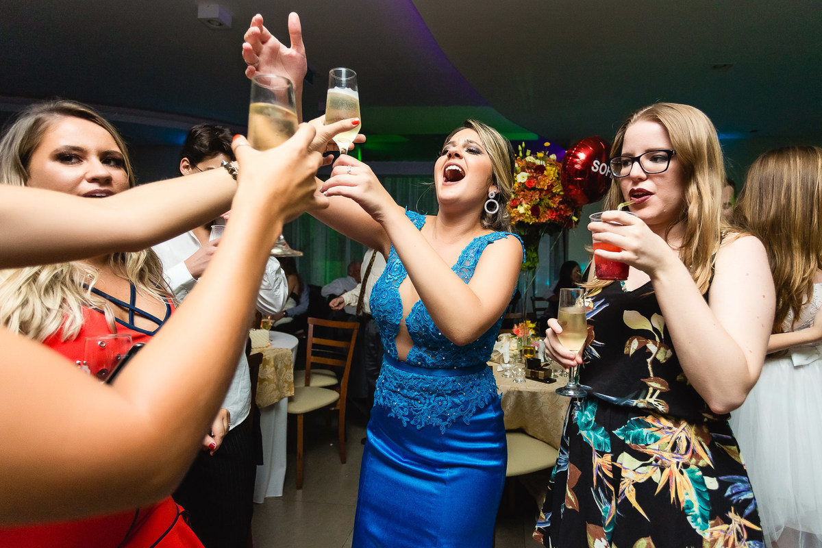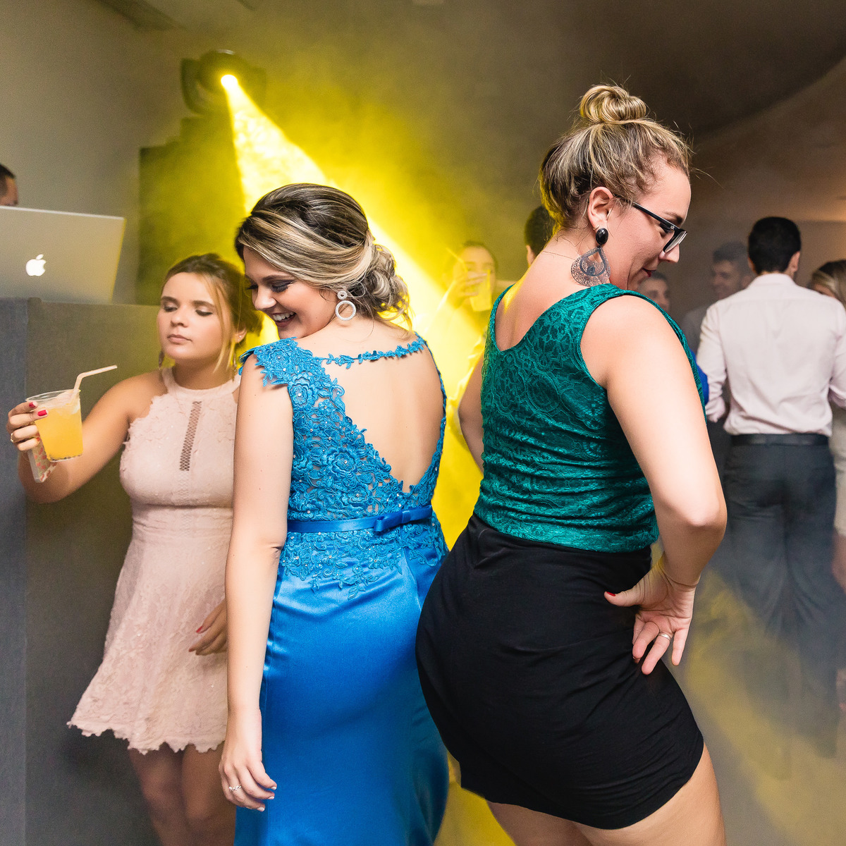 As formandas abriram a pista com estilo. Os amigos e familiares se motivaram com a coreografia que elas apresentaram e, logo, a pista estava repleta de alegria e sorrisos.